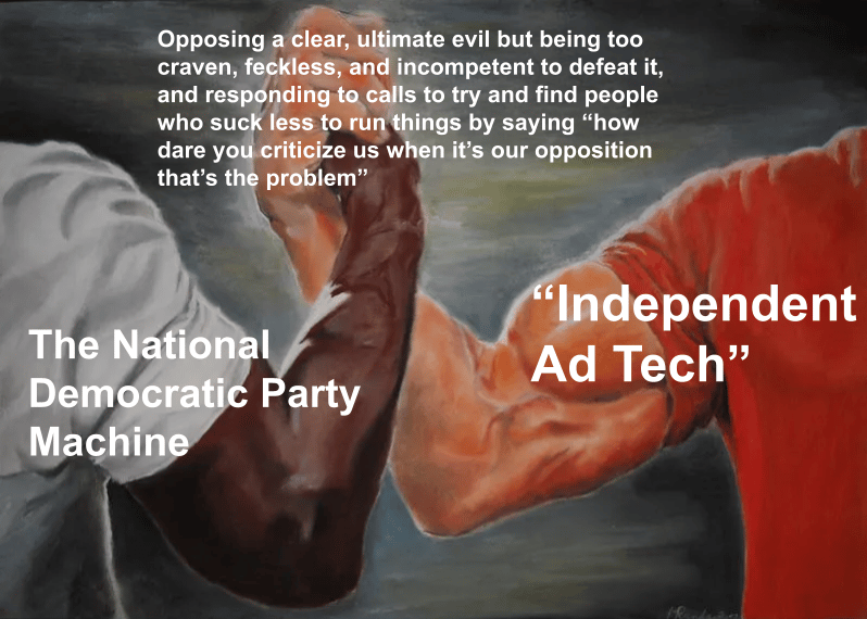 This is where you’re about to learn about a distinct axe I have to grind with the American Democratic Party and “independent ad tech.”