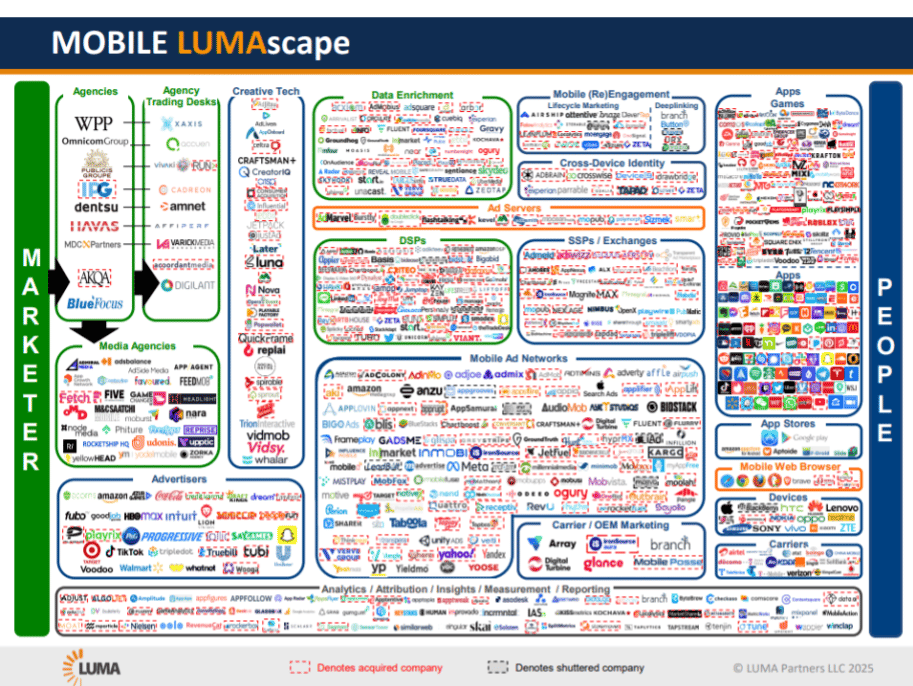 In case you’ve never seen a LUMAscape, or haven’t seen the mobile one recently, here it is. I have placed it under a sentence with the phrase “trash heap” in it, and I’m going to leave it at that because there’s only so many fights you can pick in the day, and/or should pick as a functionally unemployed guy, am I right?